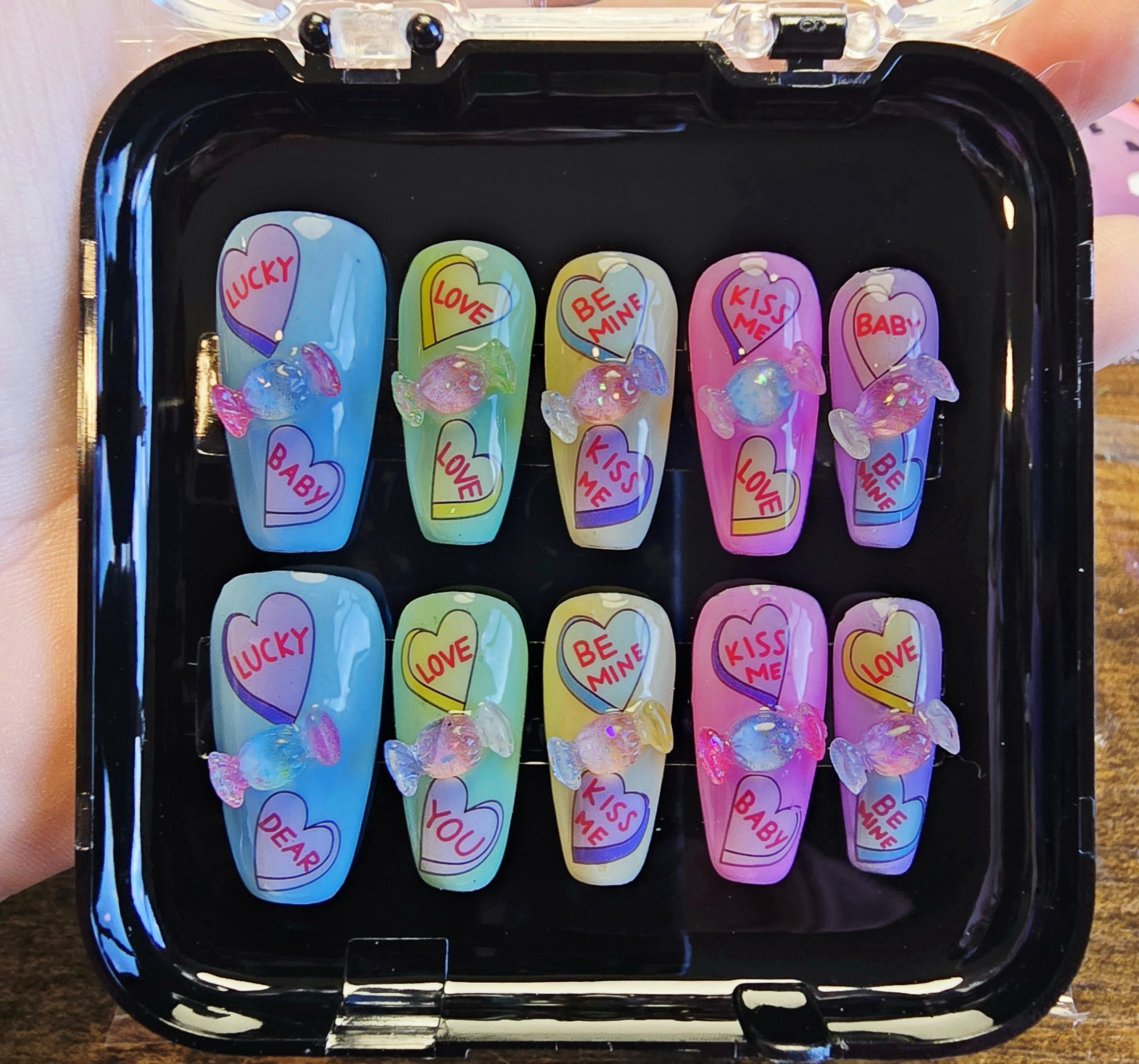 Show your love with this beautiful nail set! Set includes 10 nails with a manicure kit included.