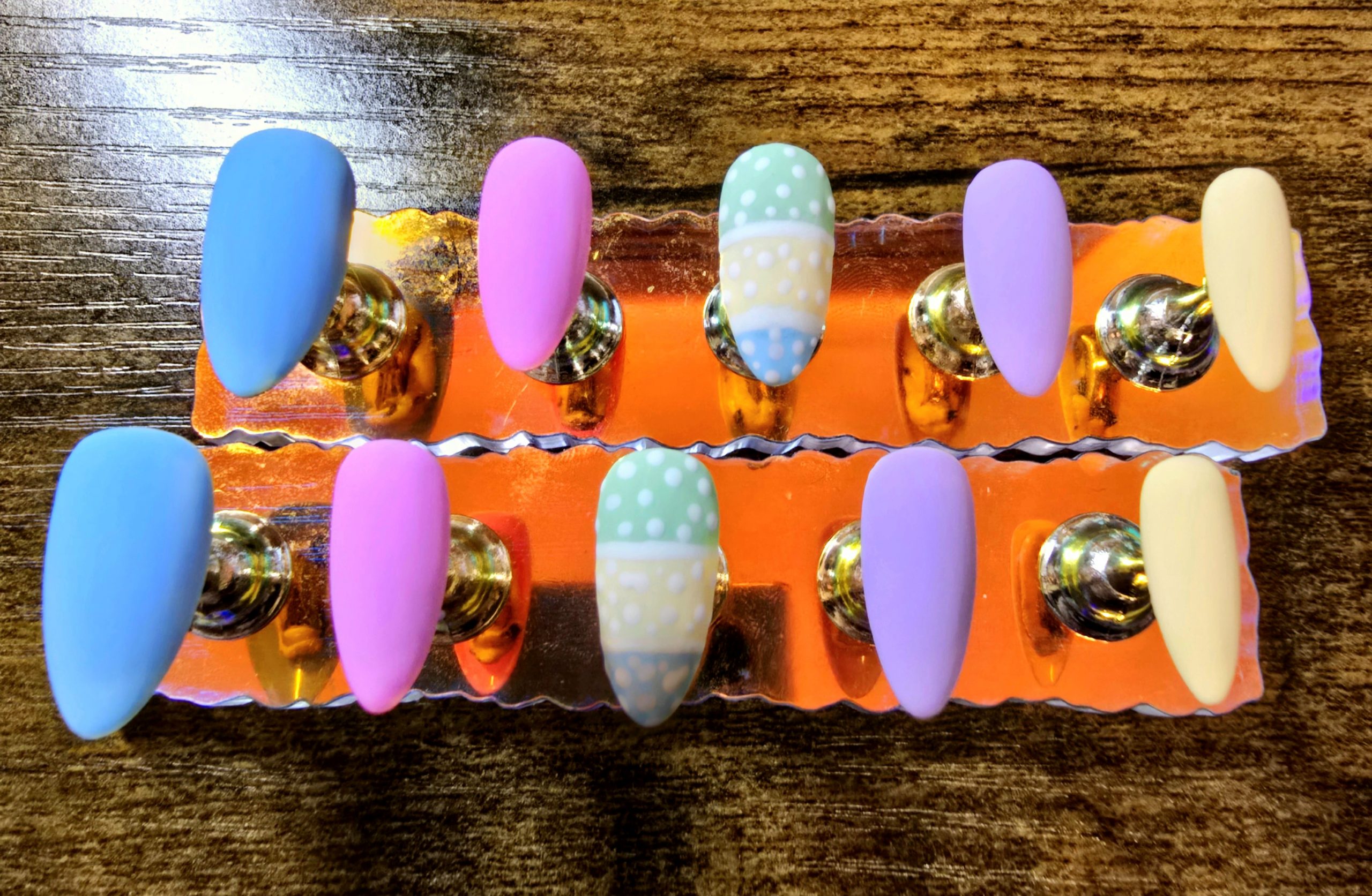 The Easter egg nails are so cute! The set comes with 10 nails and a manicure pack for easy application.