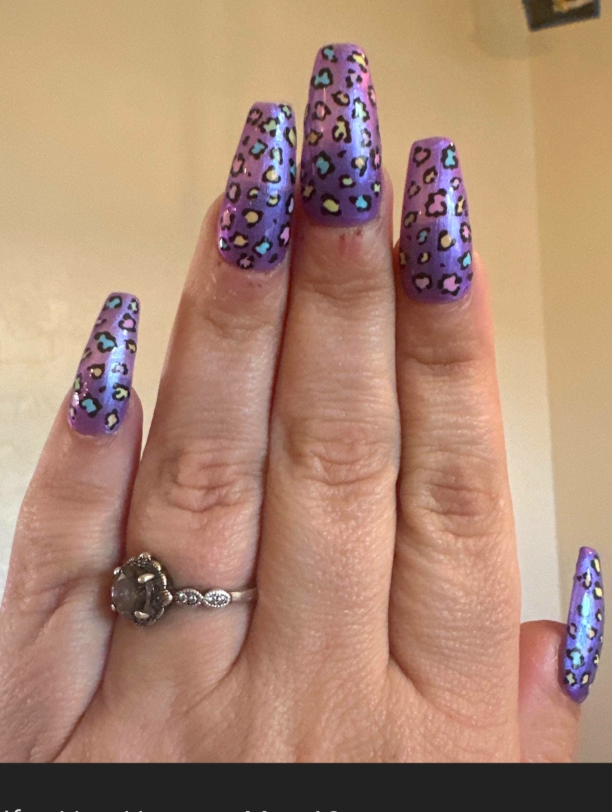 Step into a world of nostalgia with these Lisa Frank-inspired nails, sparkling with iridescent color. Each set includes 10 dazzling nails and a complete manicure kit.