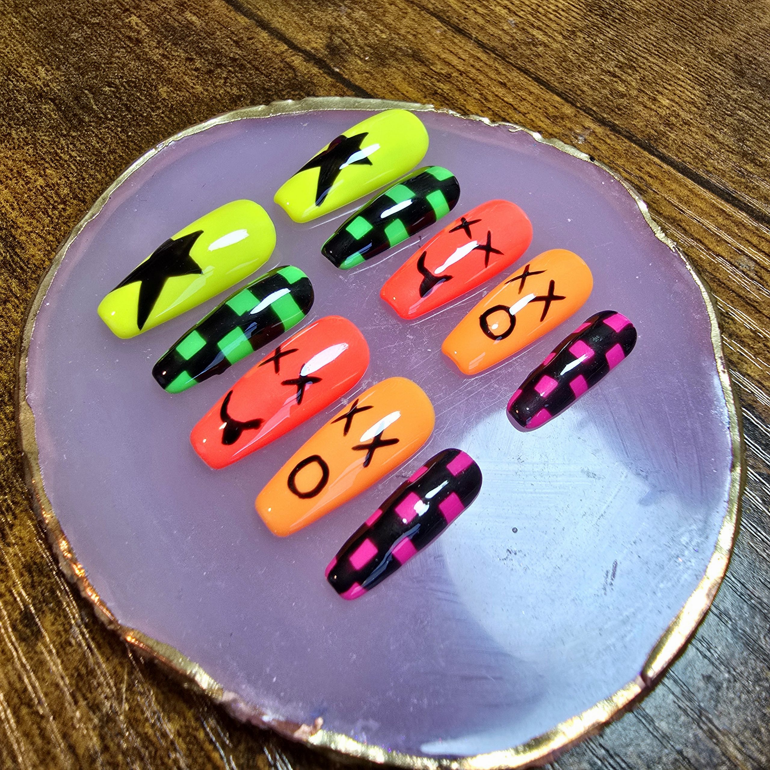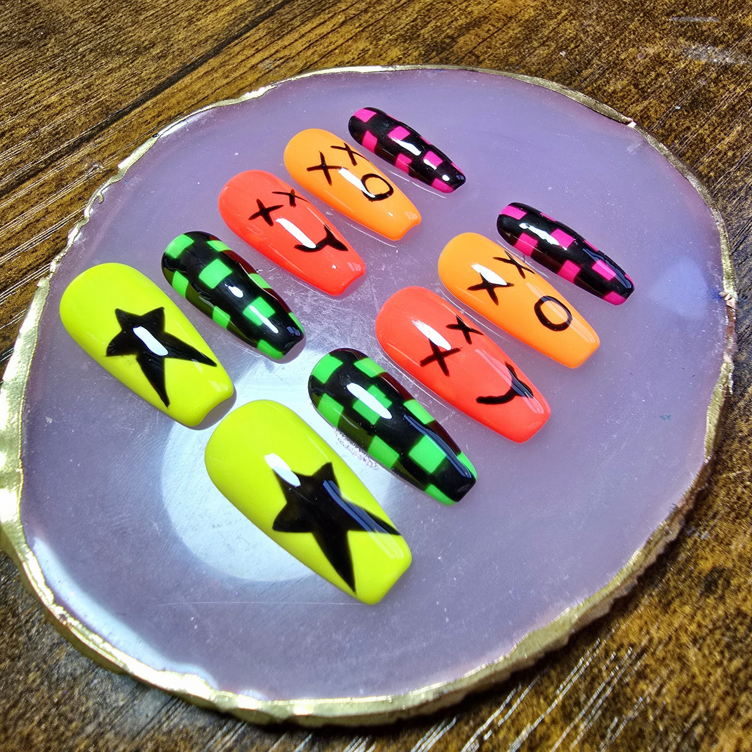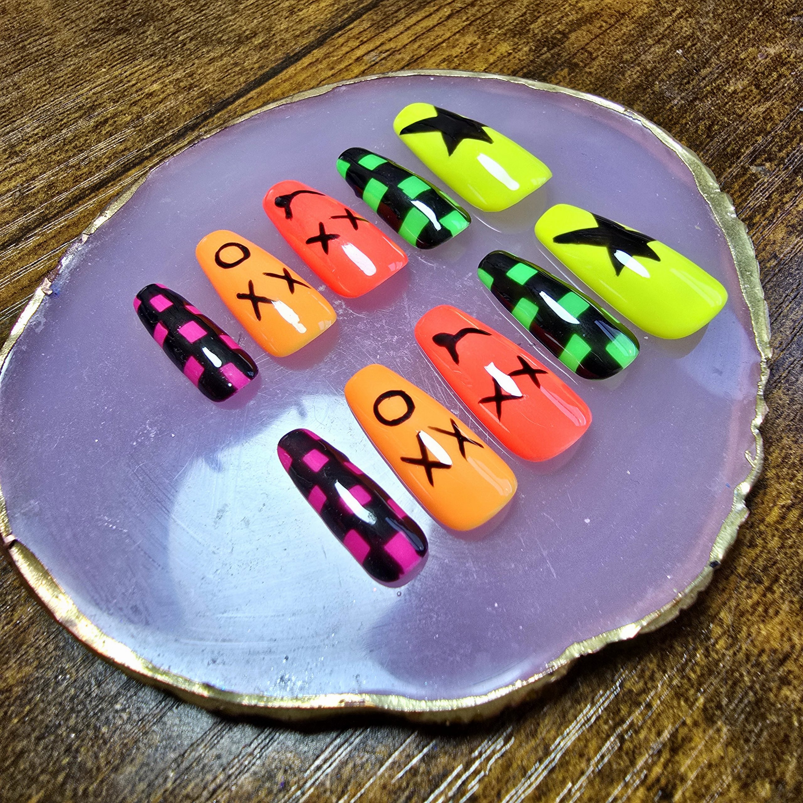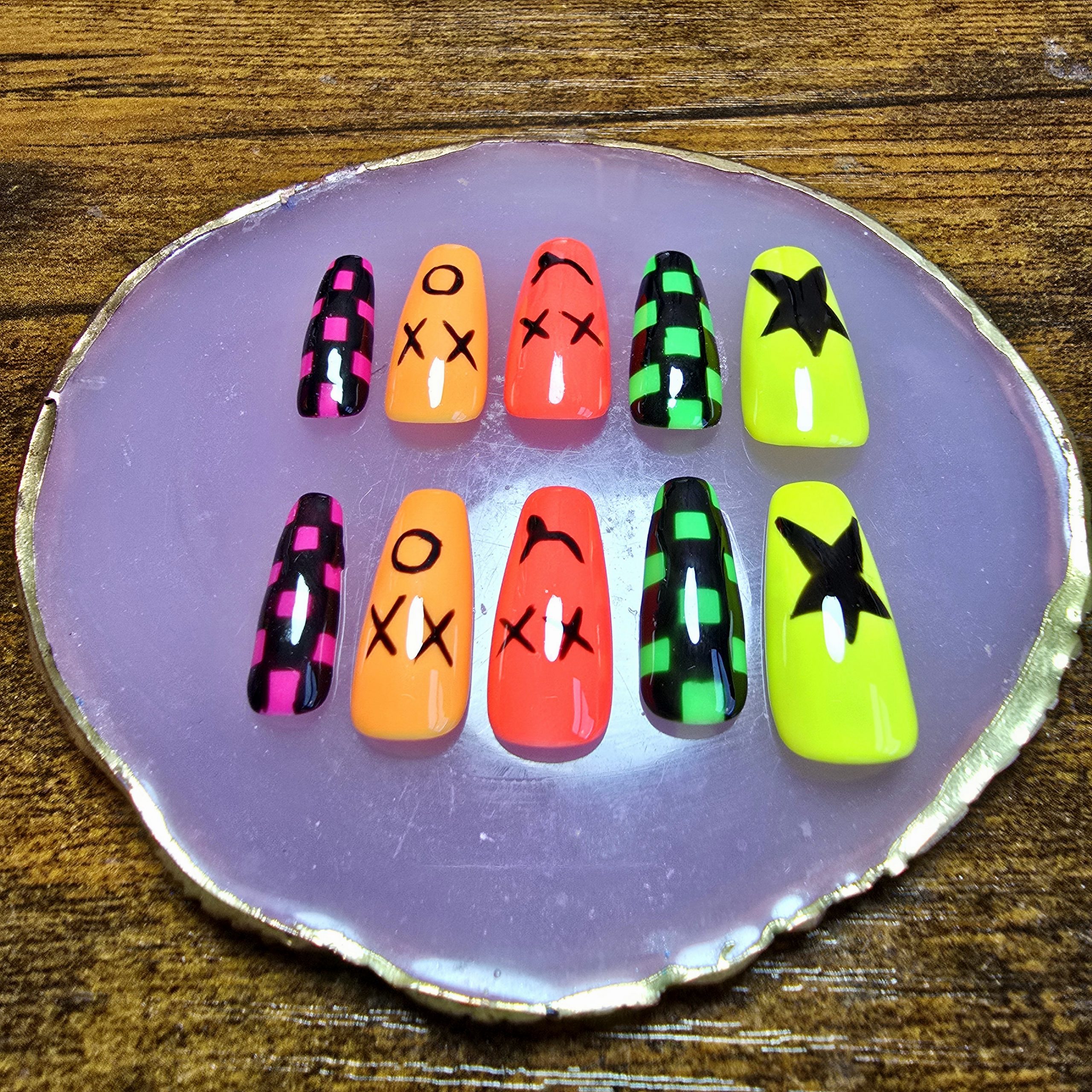 Step into the 90s with this throwback nail set, bursting with nostalgic energy.